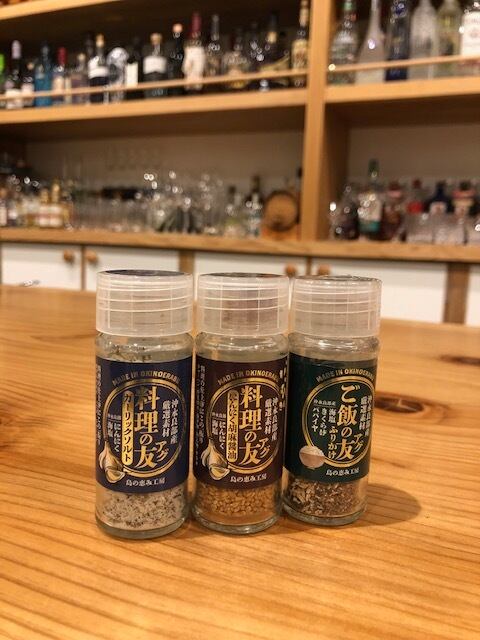 島の方言で友達の事をアグと言います。アツアツのご飯に最高!沖永良部島産きくらげとパパイヤのふりかけ、ご飯の友。料理の仕上げに最適な沖永良部島産海塩とニンニクのガーリックソルトと沖永良部島産ニンニクと胡麻醤油の香り高いコラボレーション、料理の友。3本をセットにしました!